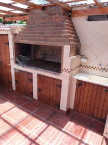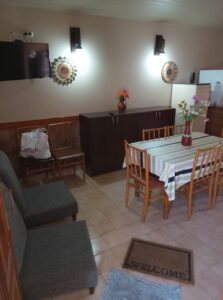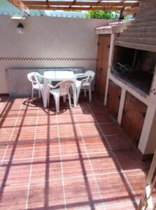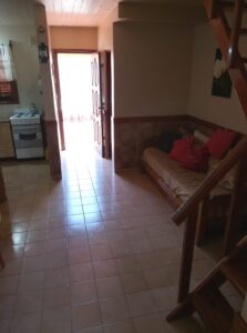 El inmueble está distribuido en 2 plantas: planta baja cuenta con sillones, una cama, heladera con Freezer, microondas, pava eléctrica, tele smart con cable y wifi, un baño, patio con parrilla cerrado.