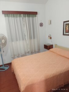 Es muy cómodo en distribución, la cual tiene una habitación con cama de dos plazas, ventilador, baño completo, cocina equipada con heladera, microondas, pava eléctrica, sillón y televisor con directv. Patio cerrado con parrilla.