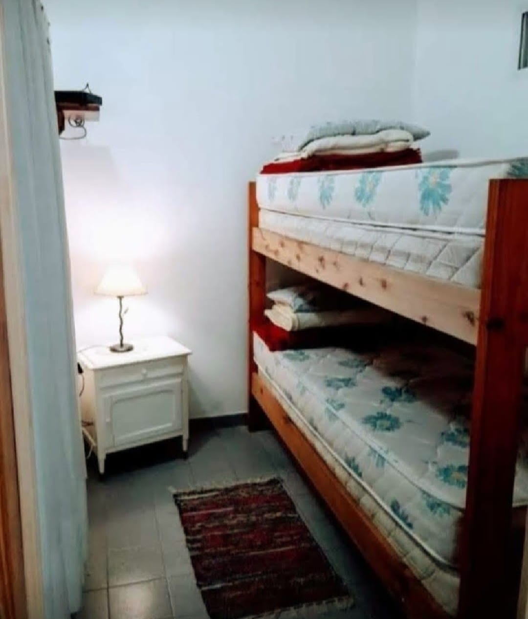 El inmueble está distribuido en planta baja con 2 dormitorios, uno con una cama de dos plazas, tv; y el otro con una cama cucheta. Baño completo. La cocina está equipada con heladera con freezer, microondas, pava eléctrica. Living-comedor con sillones, tv con directv